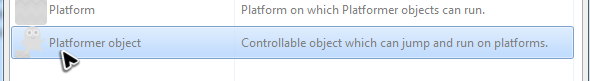Se mostrará una lista de comportamientos disponibles. Para este objeto, elegimos la opción Objeto que se desplaza sobre plataformas y damos clic en aceptar.